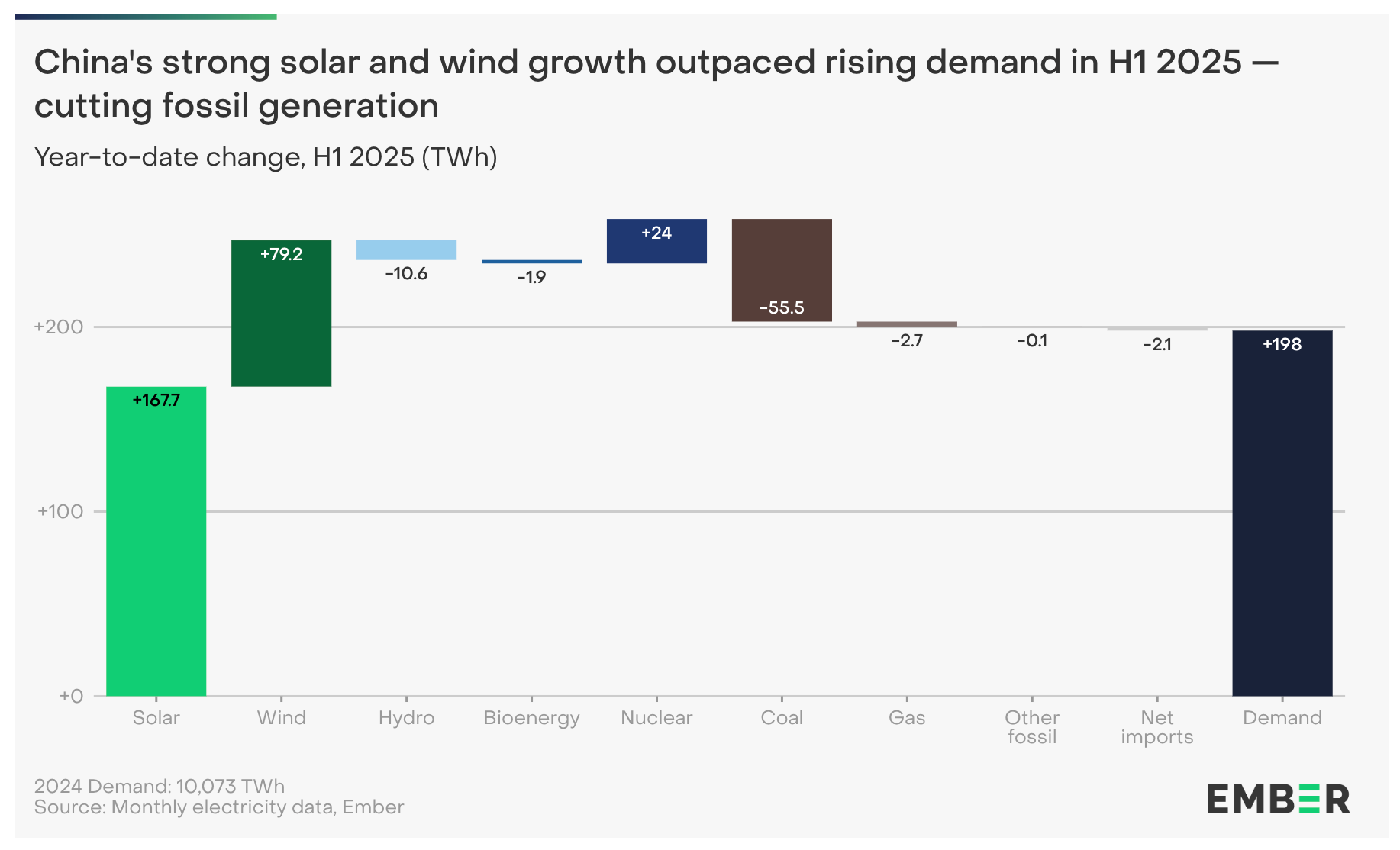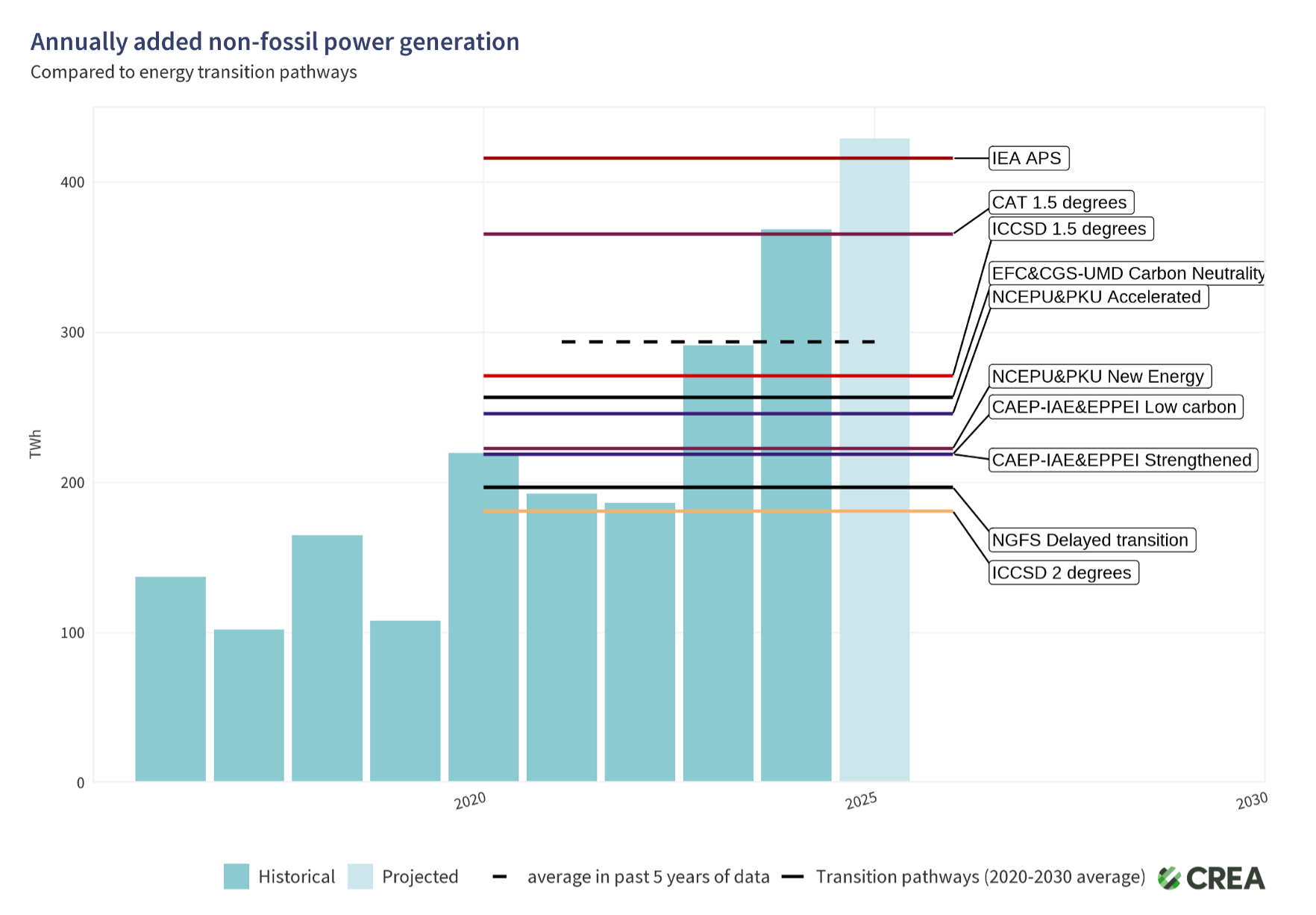 This year, China added around 430 terawatt-hours (TWh) of non-fossil (basically renewables and nuclear) electricity.