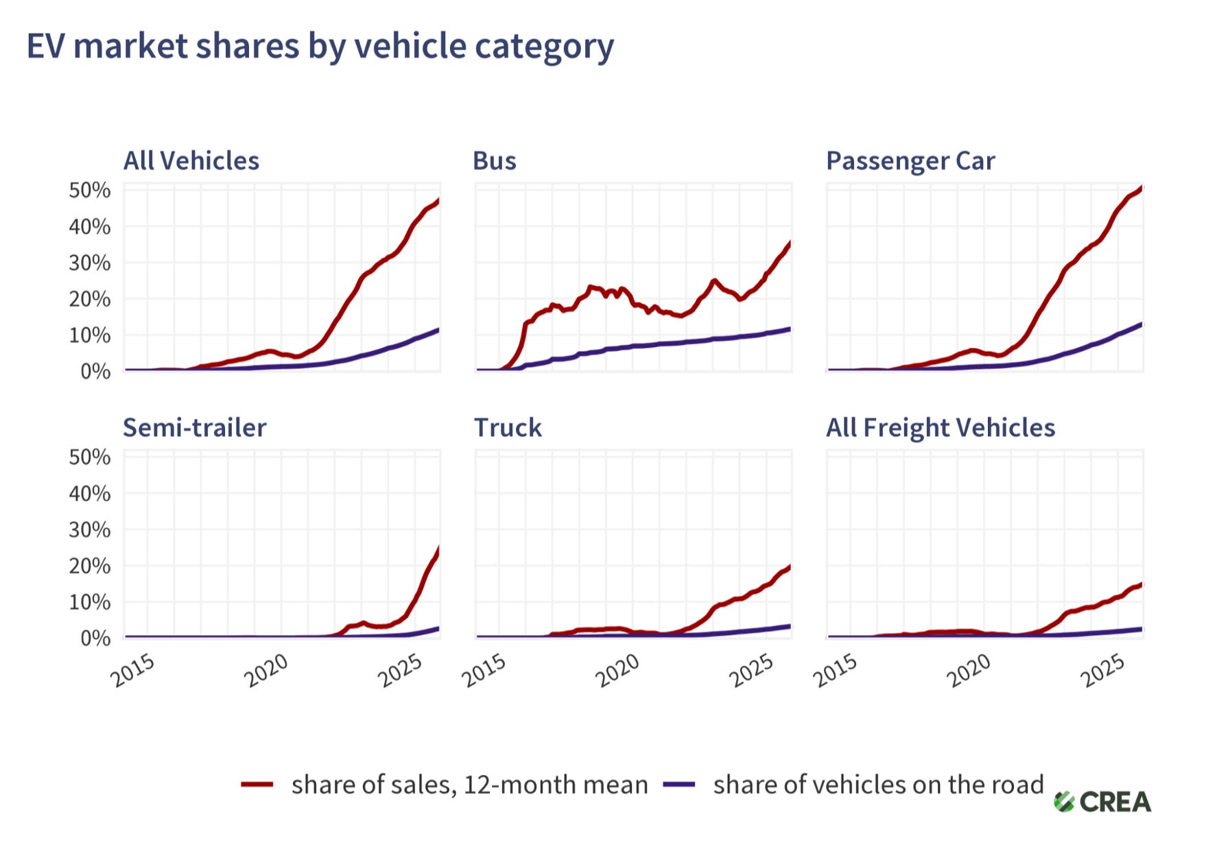 More than half of new cars sold in China are electric. 10% on the road are. What’s impressive is how much electrification is happening in other vehicle segments, too. One-in-five new trucks sold are now electric.
