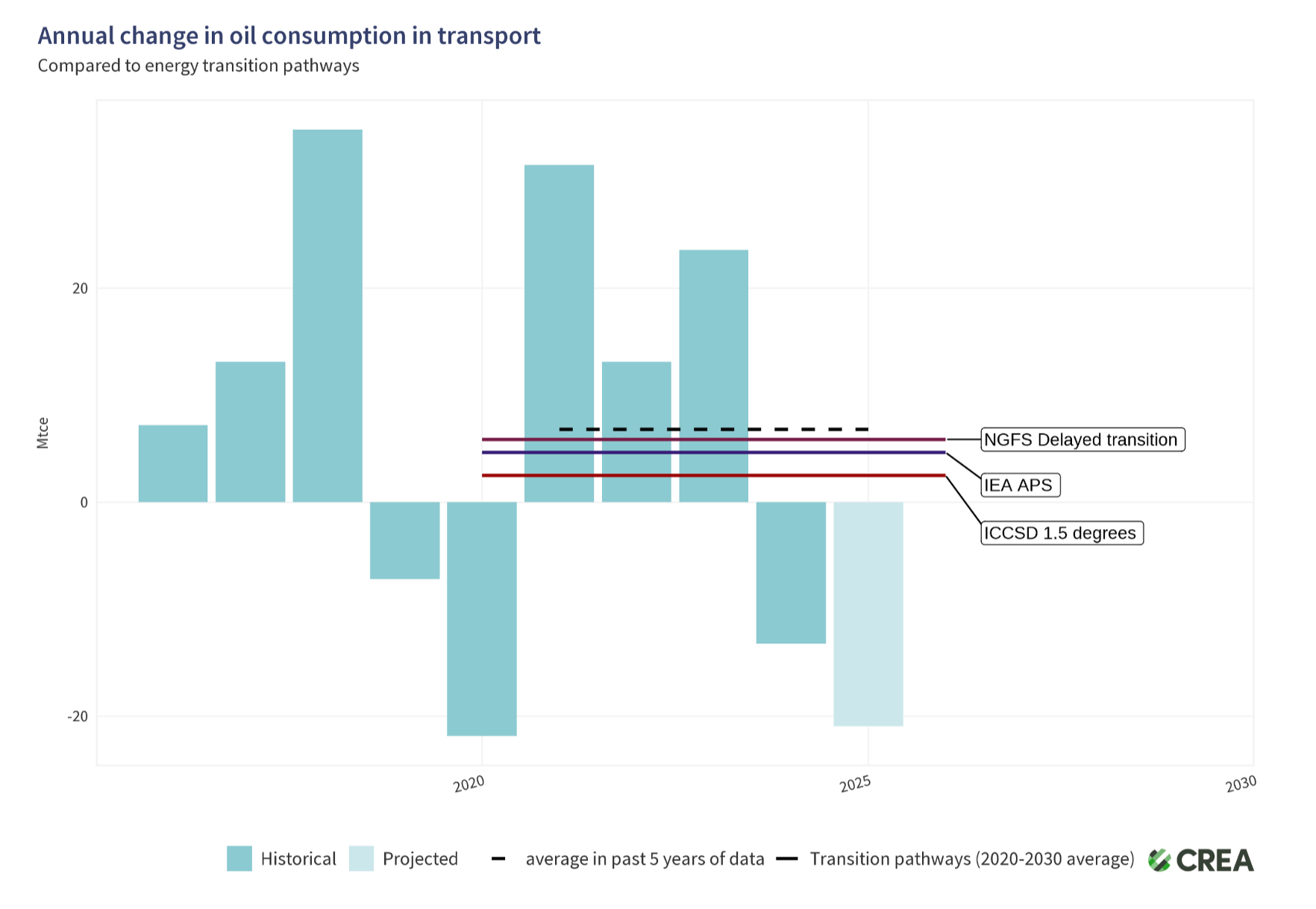 It looks like it’s succeeding. Oil consumption for road transport fell last year, and is expected to fall again this year, by 5%. You can see this in the chart below.