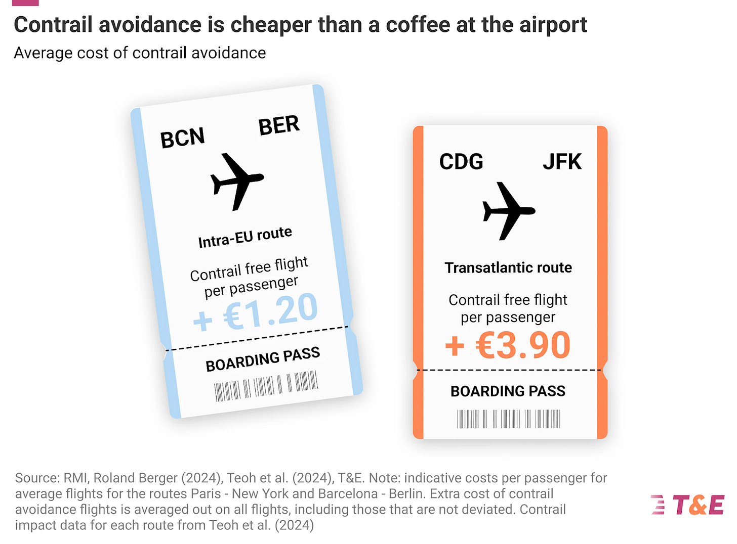 This is based on data published in the Transport and Environment (T&E) 2024 Report: Contrail avoidance: aviation’s climate opportunity of the decade.