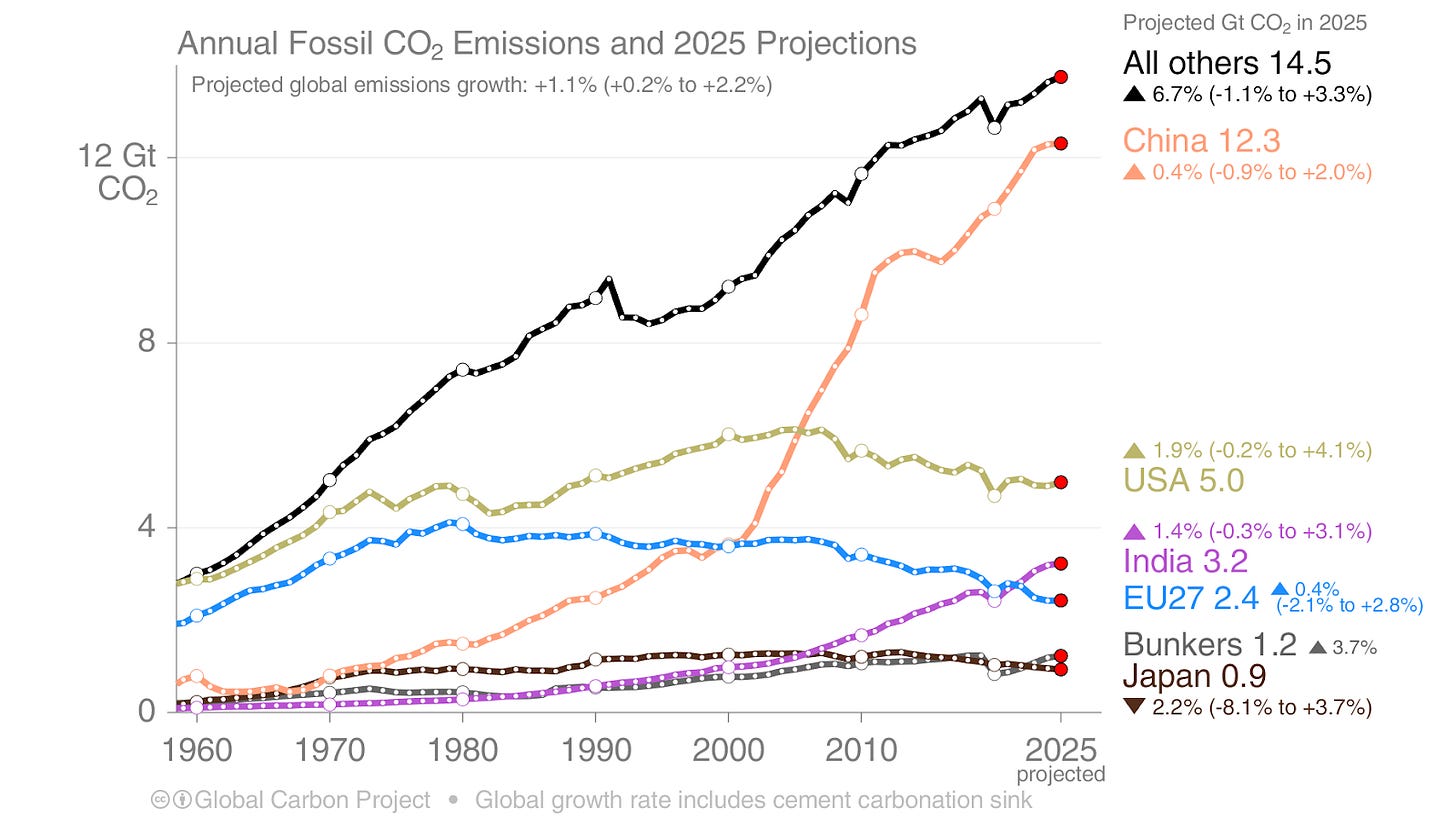 At Our World in Data, we just updated all of our CO₂ emissions data with the latest (it includes all 2024 data, but not 2025 projections).